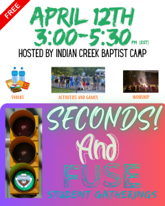 FUSE Student Gatherings for 2026 will begin in April. All dates/times/locations are included in the 3rd graphic on this page. Join us for any or all of these gatherings! FUSE gatherings are FREE and always include some fun activities, a message or devotion, and dinner. These are open to students in grades 6-12 from across the ABC-IN/KY Region. Whether your church is bringing one student, 50 students, or somewhere in between, you are welcome! Parents are also welcome to simply drop off and pick up students, if you are unable to organize a group coming from your church.